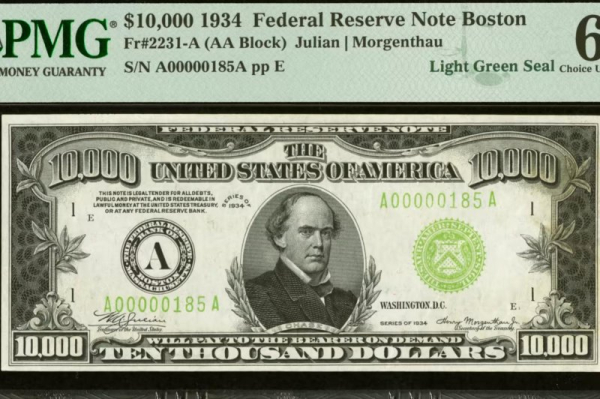 “The $10,000 trails only the $100,000 gold certificate issued in 1934, and of the 18 examples graded by PMG, this example is tied for the highest-graded,” Dustin Johnston, vice president of currency at Heritage Auctions, in a news release.