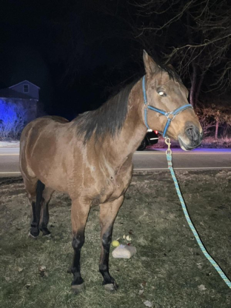 Animal control officers in Massachusetts wrangled a loose horse and were later able to return the animal to its owner. Photo courtesy of Millis/Medway Animal Control/Facebook