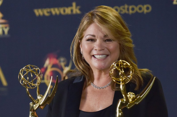 Valerie Bertinelli holds up her Daytime Emmys for Outstanding Culinary Host and Outstanding Culinary Program backstage in the press room at the 46th Annual Daytime Emmy Awards held at the Pasadena Civic Auditorium in 2019. File Photo by Chris Chew/UPI | License Photo
