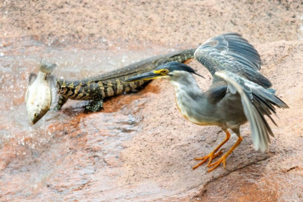 1 of 3 | A fish escapes the beak of a bird and the teeth of a lizard all in a matter of seconds in Kruger National Park. Photo courtesy of LatestSightings.com