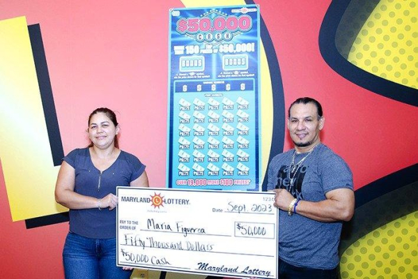 Elio Figueroa brought his wife, Maria, a scratch-off lottery ticket that turned out to be a $50,000 winner. Photo courtesy of the Maryland Lottery