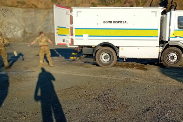 A Ministry of Defense bomb disposal team safely detonated a 19th century bomb that spent more than 100 years as a garden decoration at a home in Pembrokeshire, Wales. Photo courtesy of Milford Haven and Neyland Police/Facebook