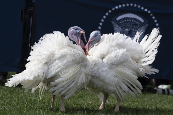 Liberty and Bell participate in a turkey pardoning ceremony at the White House. Here are five times traditional Thanksgiving foods, including turkey, potatoes and macaroni, made the Odd News headlines. Photo by Yuri Gripas/UPI | License Photo