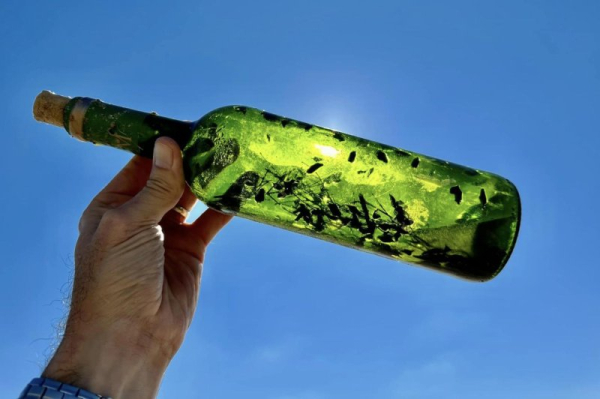 Researchers in Texas said “witch bottles” have been washing up on beaches in Texas’ Coastal Bend. Photo courtesy of the Harte Research Institute for Gulf of Mexico Studies/Facebook