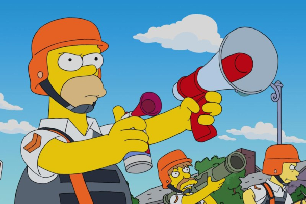 The season premiere gives Homer Simpson yet another new job as a school crossing guard. Though primarily a nuclear power plant safety inspector, Homer has also been an astronaut, baseball player, monorail conductor, clown, voice actor, country singer manager and many more.
