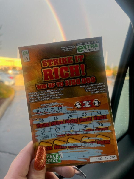 Mills said she spotted a rainbow in the sky right after revealing the winning amount, so she snapped a photo of her ticket in front of the rainbow.